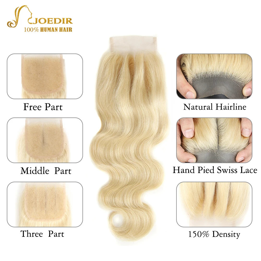 Sobornar 613 paquetes rubios con cierre peruano onda del cuerpo paquetes de cabello humano con cierre puede hacer 613 cabello humano frente peluca Joedir Mayor