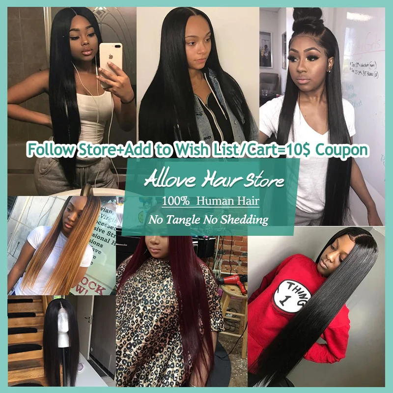 Paquetes de pelo lacio brasileño Allove con cierre de Fontal 100% paquetes de tejido de cabello humano con peluca Frontal con Frontal